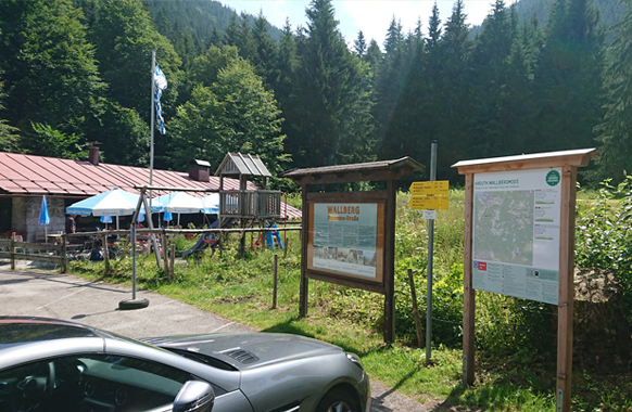 Mit dem Auto bereits auf 1117 m Höhe. Den Wallbergmoos-Parkplatz als Ausgangspunkt für familienfreundliche Touren.